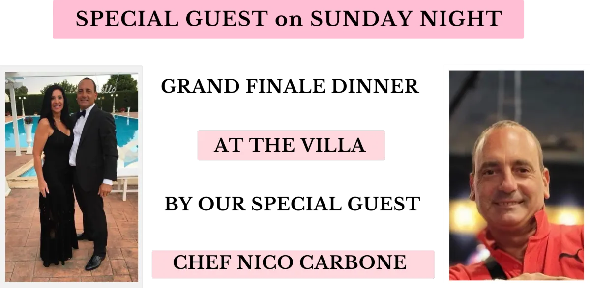 7:00pm: Grand Finale Celebration Dinner Included at The Villa by Chef Nico Carbone & Special Cocktails by Mixologist, Michelle Phelps